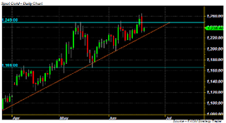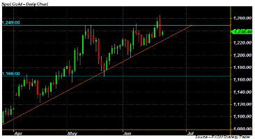 After hitting new all-time highs above $1265 on Monday, gold got pounded in what some are calling a key reversal. Prices are currently rebounding some of those losses. As discussed at length previously, gold’s rally is a function of investment flows, primarily investment flows into ETFs. Because of the nature of the rise—one that is investment driven—there is little way to predict gold’s near-term direction. Instead, the best course of action for those that want to be involved is to buy the dips with tight stops. Indeed, gold’s relatively low volatility is conducive for such trades, but as Monday’s action demonstrated, large daily moves are still very much possible.